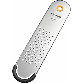 Fiskars Functional Form™ rupjā rīve (Coarse Grater). Šis virtuves piederums ir īpaši izstrādāts ērtai un ātrai dārzeņu, augļu un sieru rīvēšanai. Pielietojums: Ideāli piemērota mīkstajiem sieriem, burkāniem, kabačiem un citiem dārzeņiem.Materiāls: Izturīgs nerūsējošā tērauda asmens ar plastmasas rokturi.Drošība: Komplektā ietilpst aizsarg..