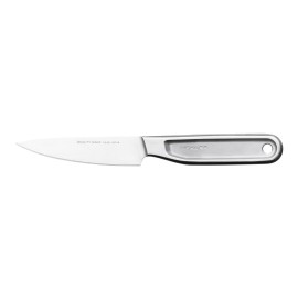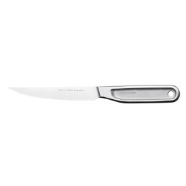 Fiskars All Steel tomātu nazis ir ideāli piemērots, griežot produktus ar plānu garozu vai mizu, piemēram, tomātus All Steel naži apvieno augstas kvalitātes materiālus un nepārspējamu funkcionalitāti Izgatavoti no japāņu tērauda ar augstu oglekļa saturu, kas nodrošina izcilu veiktspēju un izturību Optimāls līdzsvars vislabākajai grieš..