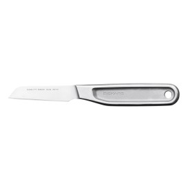 Fiskars All Steel mizošanas nazis ir ideāli piemērots mazu augļu un dārzeņu mizošanai un griešanai All Steel naži apvieno augstas kvalitātes materiālus un nepārspējamu funkcionalitāti Izgatavoti no japāņu tērauda ar augstu oglekļa saturu, kas nodrošina izcilu veiktspēju un izturību Optimāls līdzsvars vislabākajai griešanai Lieta..