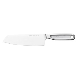 Fiskars All Steel Santoku nazis ir universāls Āzijas stila nazis Platais asmens ir ideāli piemērots gaļas, zivju, dārzeņu un citu produktu sagatavošanai All Steel naži apvieno augstas kvalitātes materiālus un nepārspējamu funkcionalitāti Izgatavoti no japāņu tērauda ar augstu oglekļa saturu, kas nodrošina izcilu veiktspēju un izturīb..